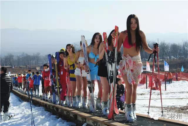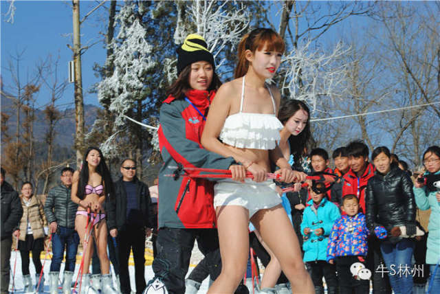 而引爆全场、最吸引眼球的当属“比基尼美女滑雪秀”。